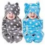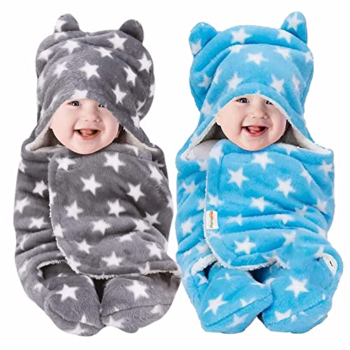 OYO BABY Baby Hooded Blankets Combo | for New Born Babies Baby Boys, Baby Girls, Babies for 0-6 Months, Fleece, Skin Friendly, 2 Blankets (Star Blue + Star Grey)