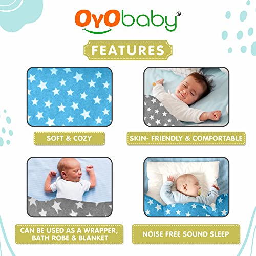 OYO BABY Baby Blankets Combo | for New Born Babies Baby Boys, Baby Girls, Babies for 0-6 Months, Fleece, Skin Friendly, 2 Blankets (Star Dark Blue Square + Star Grey Hooded)