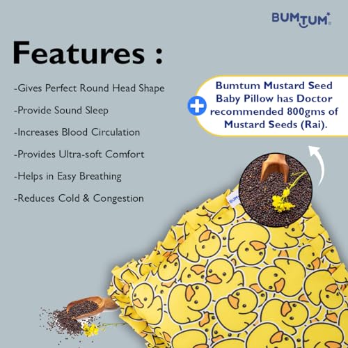 Bumtum Mustard Seed (Rai) Pillow Gives A Desirable Round Shape To The Baby's Head Reduces Cold & Congestion Increases Blood Circulation Cures Flat Head Syndrome Ear Infection And Allergies Also Provide Neck And Shoulder Support.