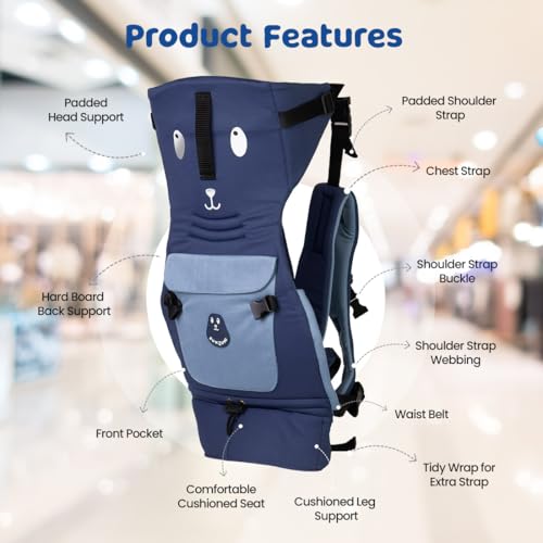 HomeBabyNurseryBaby SafetyBUMTUM Baby Blink Carrier Adjustable Hands-Free with 4 Carry Positions | Baby Carrier for 4 to 24 Months with Comfortable Head & Leg Support | Max Weight Up to 12 Kgs(Navy Blue)