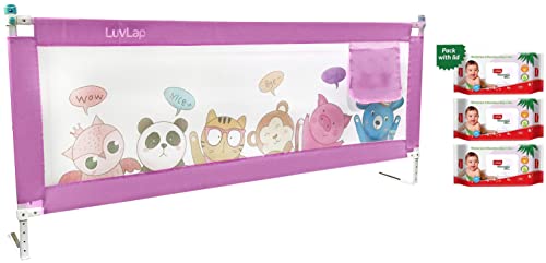 LuvLap Bed Rail Guard for Baby / Kids Safety 180cm x 72 cm Portable & Foldable baby safety essential Height & Length adjustable (Pink)Bed rail assures safety of the baby by falling from the side of the bed breathable and see through mesh gives clear view of baby's actions the height of the bed rail can be adjusted according to the convinience Portable design helps parents to carry it anywhere like grandma's house or hotels or any other place other than your room Beatuiful cartoon design on mesh available in 3 colors & large pocket to keep the baby essentialsLuvLap Paraben Free wipes for baby skin with Aloe Vera Fragrance Free pH Balanced Dermatologically Safe Baby Wipes Rich in Vitamin E & chamomile extract 72 Wipes / Pack With Lid Pack 3 packsLuvLap moisturizing baby wipes with aloe vera are the perfect wipes for your baby's delicate skin. Enriched with the goodness of aloe vera and chamomile they are completely free of alcohol and harmful parabens. The pack also comes with a lid seal to ensure the quality remains consistent over time. After all your baby's safety is our prime concern.