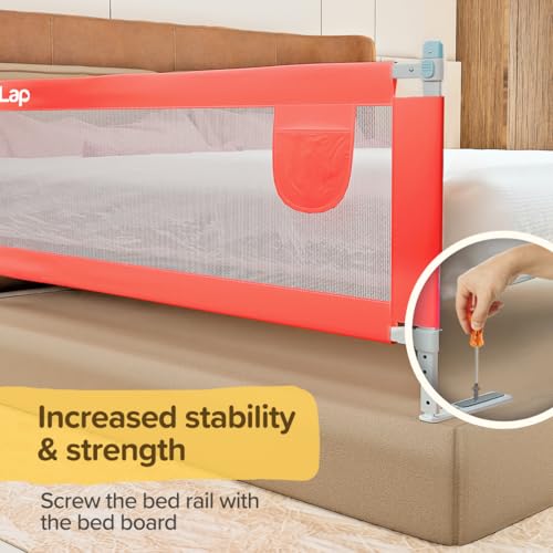 LuvLap Bed Rail Guard for Baby/Kids Safety, 180cm x 72 cm, Portable & Foldable, Baby Safety Essential, Adjustable Height, fits All Bed Sizes (Red - Without Print)