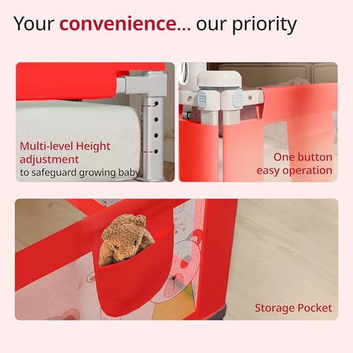 Introducing LuvLap premium baby bed rails designed to provide utmost safety and security for your little ones during their sleeping hours. Made with high-quality materials these bed rails are durable and long-lasting ensuring a safe and comfortable sleeping environment for your baby. These bed rails are easy to install perfectly fits on any standard-sized bed. They are also lightweight and portable making them ideal for travel and storage. These bed rails feature a breathable mesh panel that promotes air circulation and allows you to keep an eye on your child without compromising their privacy. The rail height is also adjustable providing customizable protection for your growing baby. With its sleek and modern design these baby bed rails will seamlessly blend in with any nursery decor. These are also easy to clean.