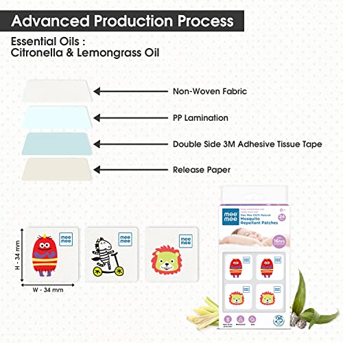 Mee Mee 100% Natural Mosquito Repellent Patches (24 Baby-Safe Patches) with 16 Hr Protection | with Lemon Scent, Non-Toxic, Waterproof | Protects Babies & Kids from Dengue, Malaria, Chikunguniya