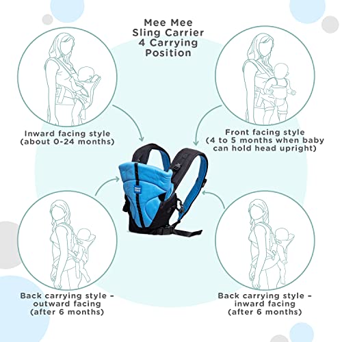 HomeBabyNurseryBaby SafetyMee Mee Comfy New Born Baby Carrier With 4 Baby carrying Modes Lightweight & Adjustable | Neck Support Baby Sling Carrier with Padded waist Support and shoulder support straps | safety buckle for 0 to 2 Years (Blue)