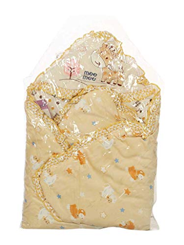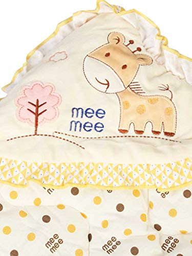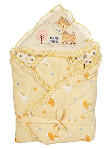 Mee Mee Baby Warm and Soft Swaddle Wrapper Hooded with Hood Double Layer for Newborn Babies (Cream Printed)