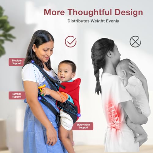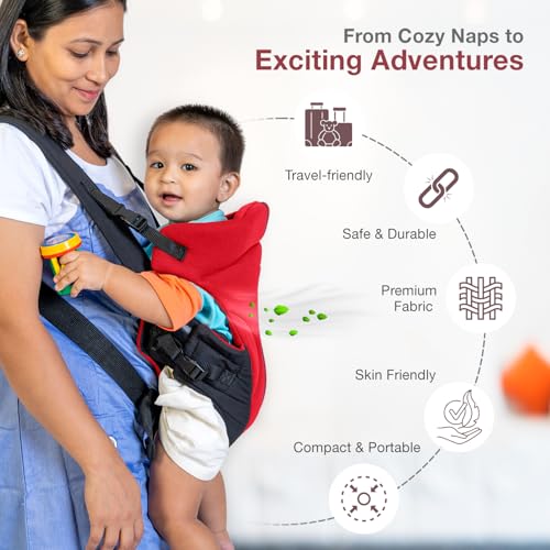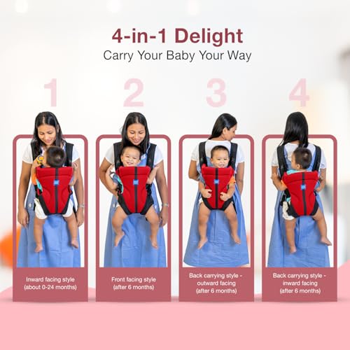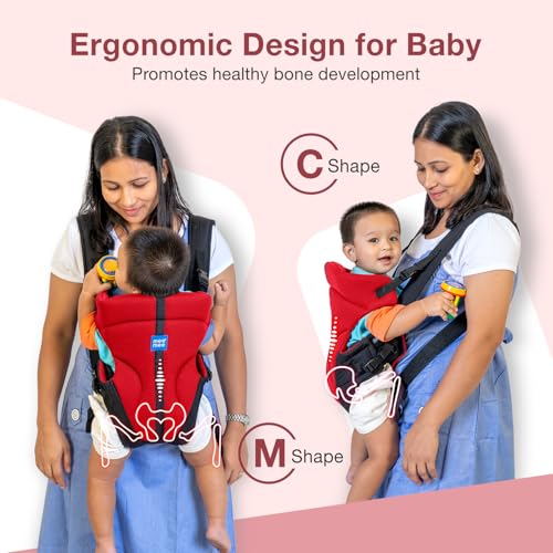 HomeBabyNurseryBaby SafetyMee Mee Comfy New Born Baby Carrier With 4 Baby carrying Modes Lightweight & Adjustable | Neck Support Baby Sling Carrier with Padded waist Support and shoulder support straps | safety buckle for 0 to 2 Years (Red)