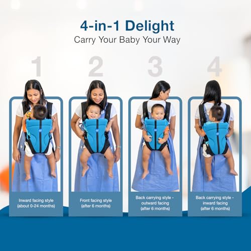 • This baby carrier can be used in 4 carrying positions – Feeding style Front carry facing parent Front carry facing out & Back carry options provide ergonomic positions for comfortable carrying