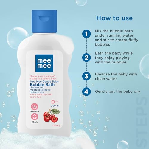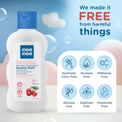 HomeBabyNurseryBaby SafetyMee Mee Baby Body Wash | Pk of 2 (200ml Each) With Cherry & Fruit Extracts | Tear-Free Formula | Moisturizes and Soothes Skin | Natural Head to Toe Baby Mild Bubble Bath Dermatologically Tested