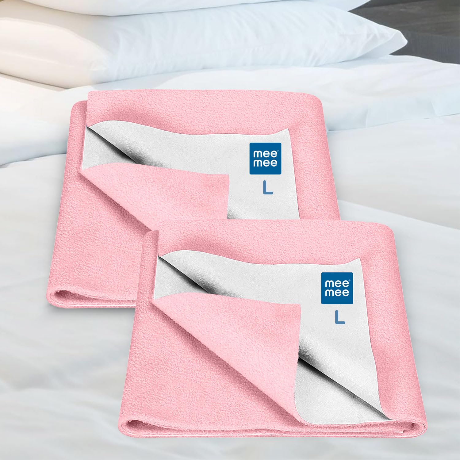 HomeBabyNurseryBaby SafetyMee Mee Reusable Water Proof Cotton Bed Protector Sheet/Extra Absorbent Mat/Dry Sheets/Urine Sheet/Dry Mat Pack of 2 (Large, Pink)(100CmX140Cm)