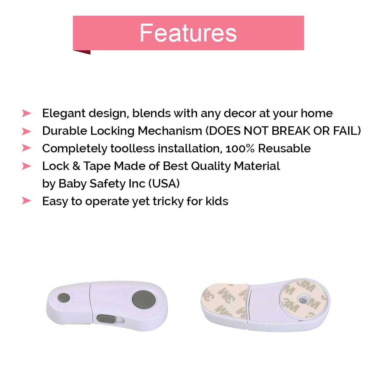 Safe O Kid Durable Elegant Child Safety Cabinet Lock Grey Pack of 4