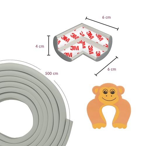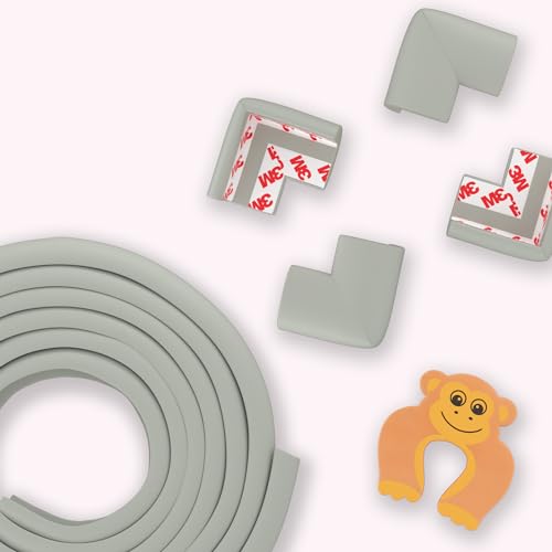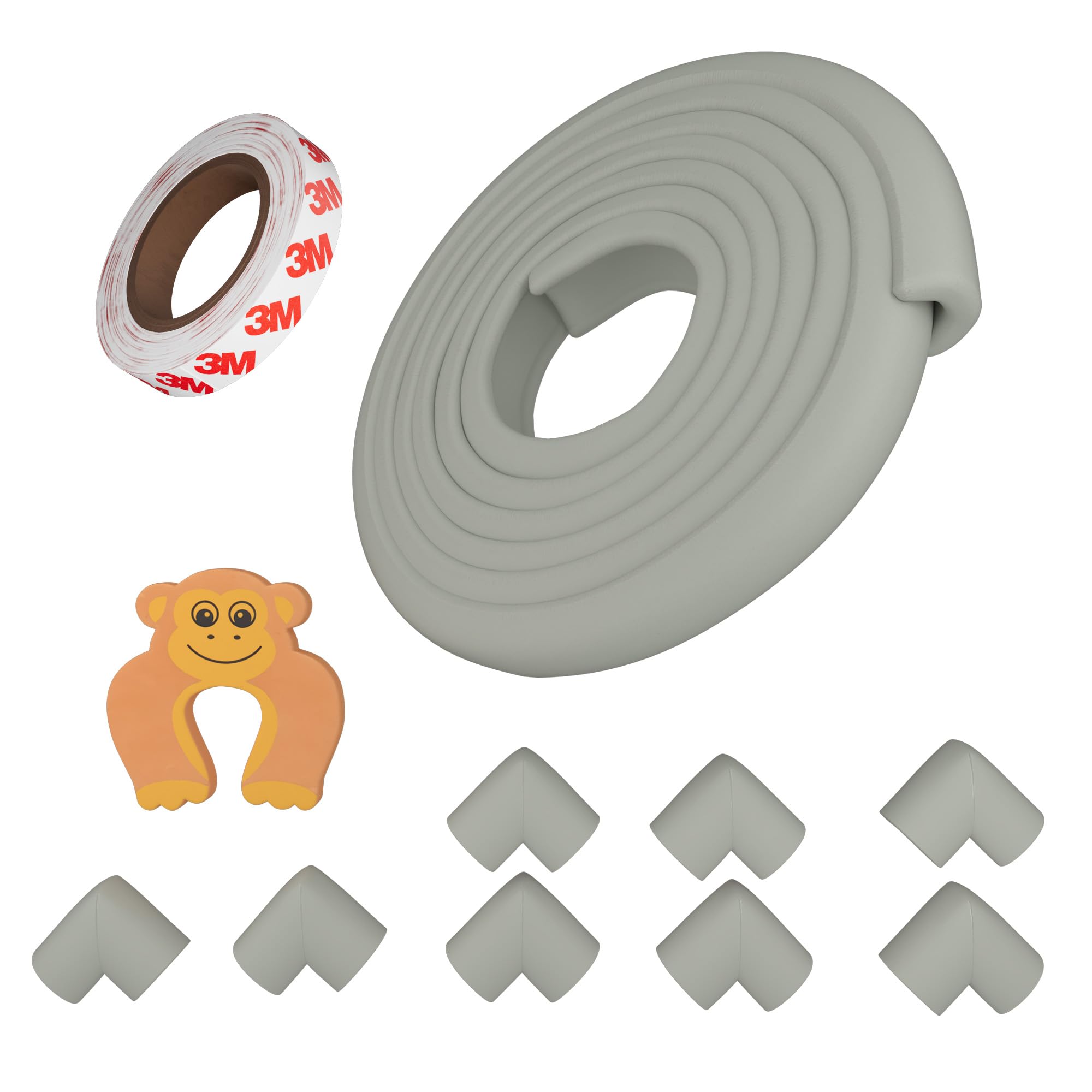 Protect your baby from sharp edges and corners with this babyproofing kit. It contains 1 16.4-foot edge guard 8 pre-taped corner protectors 1 door stopper and 1 double-sided easy-to-peel tape for the edge guard. These items may be used to babyproof the furniture in your home. All the contents of this kit are made from non-toxic eco-friendly baby-safe material tested according to IS 9873 safety standards. They are made to increase contact surface and absorb the impact when a baby falls against them. This babyproofing kit is convenient hassle-free and easy to install and use without the need for any tools.