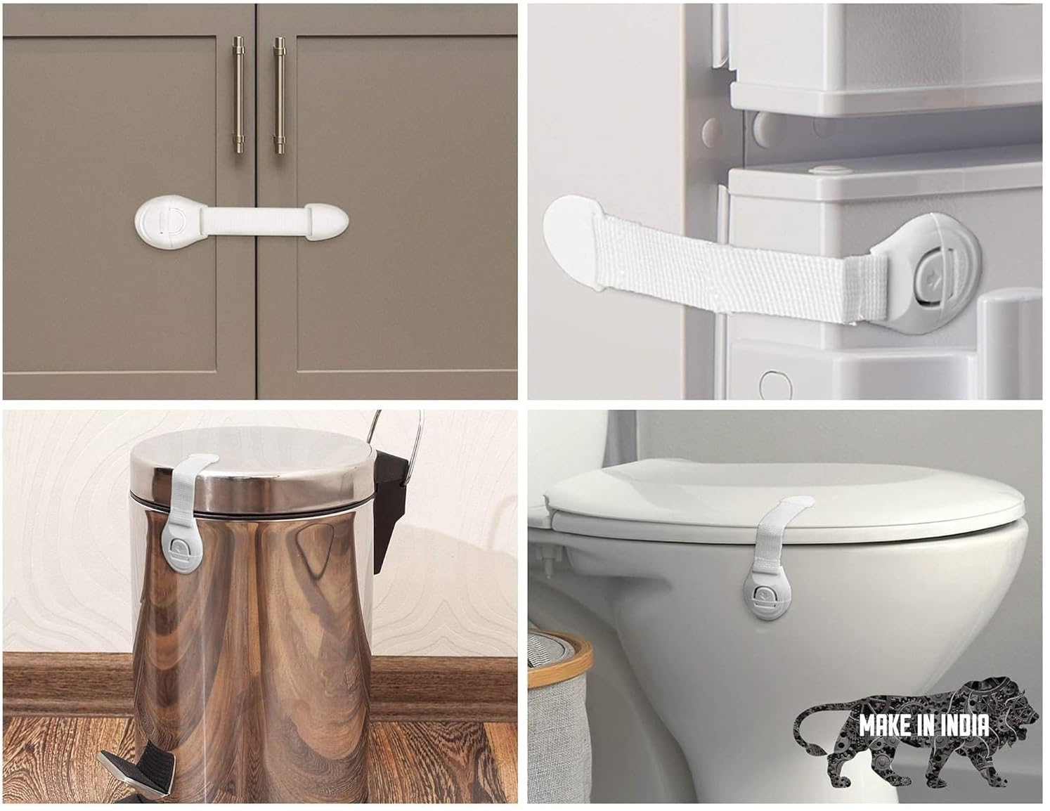 Swadhin Furniture Safety Locks for Kids - Pack of 5 White Locks Child Safety Locks for Drawers Cabinets Fridge Cupboard Lock Baby Proofing Product Strong and Adhesive Safety Locks (Button Lock)