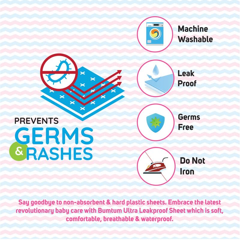 ·FOR BABYS HEALTHY COMFORT: Babies need care love and undisturbed sleep. Bumtum Ultra Leakproof Baby Sheet is specially curated for your baby. With this ultra leak proof sheet your baby will have a peaceful sleep.
