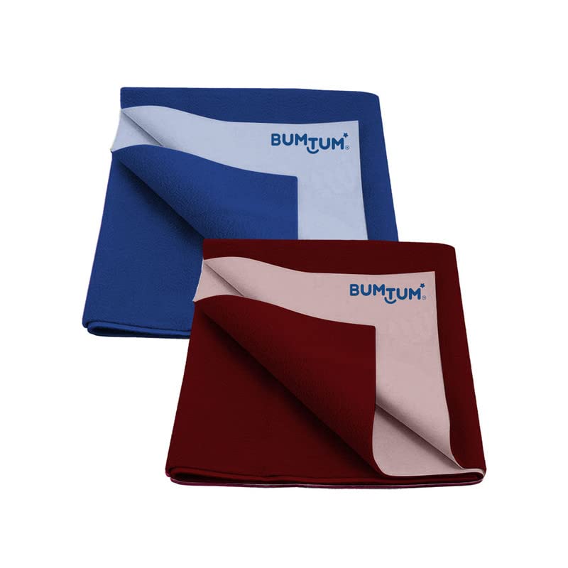 Bumtum Baby Dry Sheet Waterproof Quick Soft Fleece Baby Bed Protector | Anti - Bacterial & Odour Free | Extra Absorbant, Reuseable & Washable (Royal Blue + Maroon Combo, Large Size, Pack of 2)