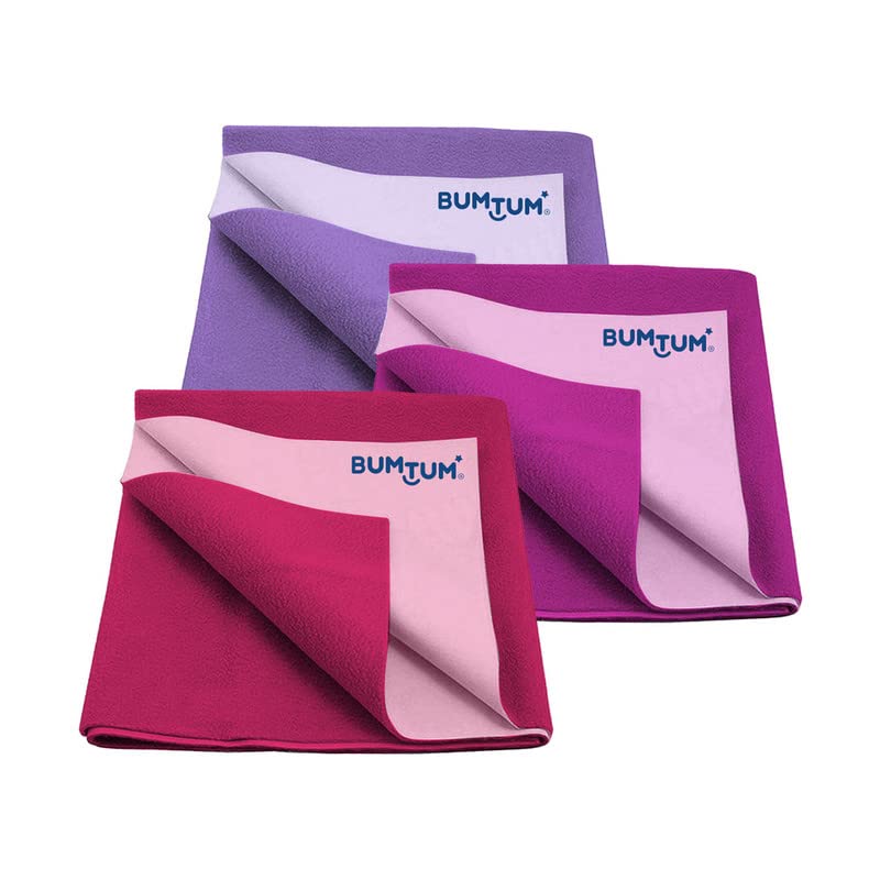 Bumtum Baby Dry Sheet Waterproof Soft Fleece Baby Bed Protector | Anti - Bacterial Extra Absorbant Reuseable & Washable (Lilac + Grape + Hot Pink Combo Small Size 50 * 70cm Pack of 3)