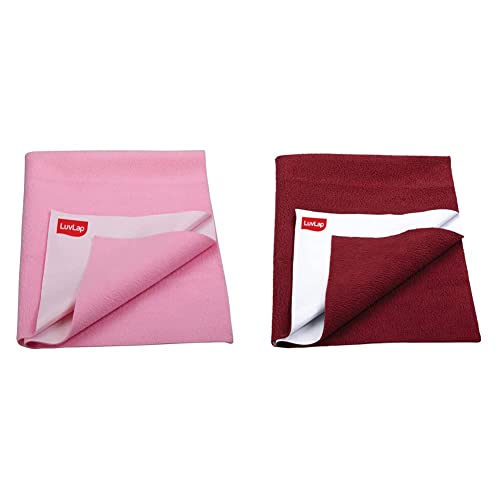 LuvLap Instadry Extra Absorbent Dry Sheet/Bed Protector - Baby Pink, 0m+ - Small 50 x 70cm & LuvLap Instadry Extra Absorbent Dry Sheet/Bed Protector - Maroon, 0m+ - Small 50 x 70cm