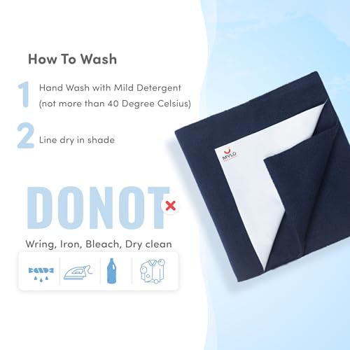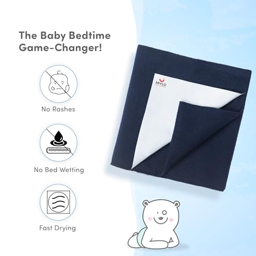 Mylo Baby Waterproof Mattress Protector for Baby (0-3 Years), Extra Absorbent, Soft and Reusable Quick Dry Sheets (Medium, 100cm x 70cm,Navy Blue)