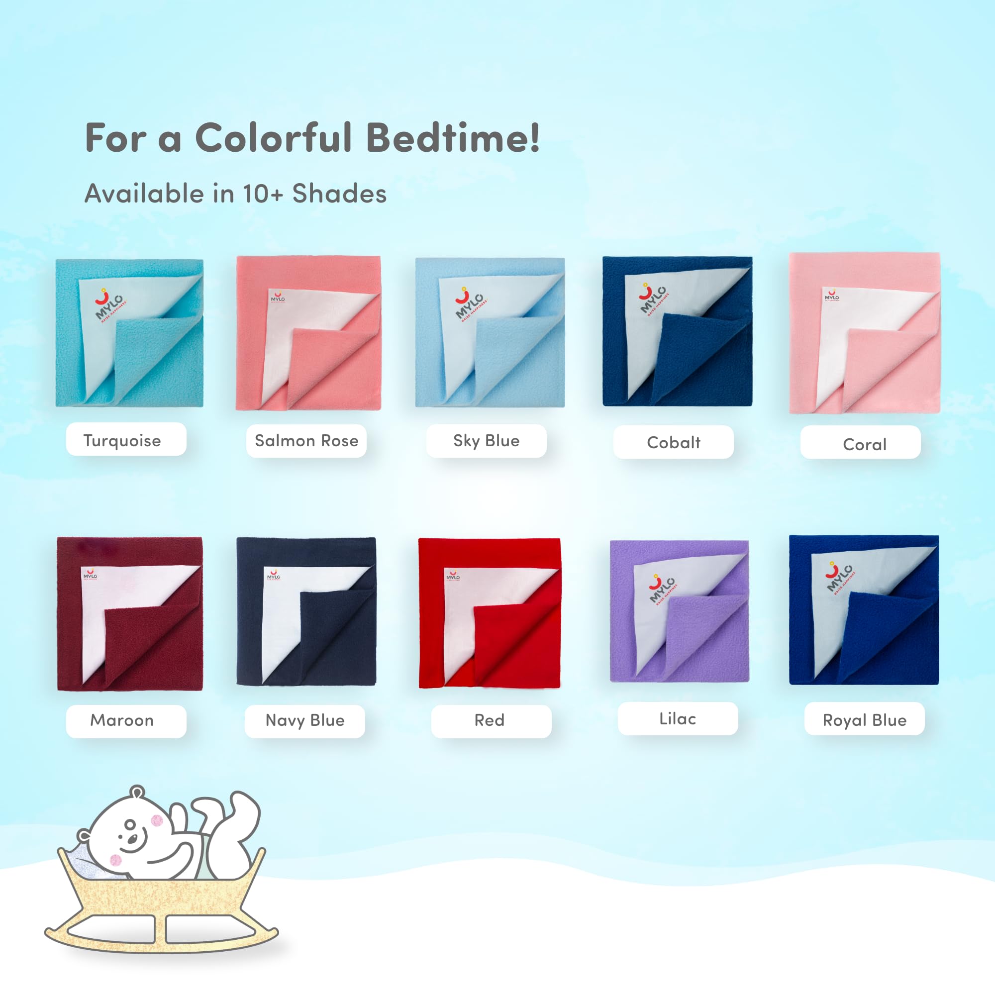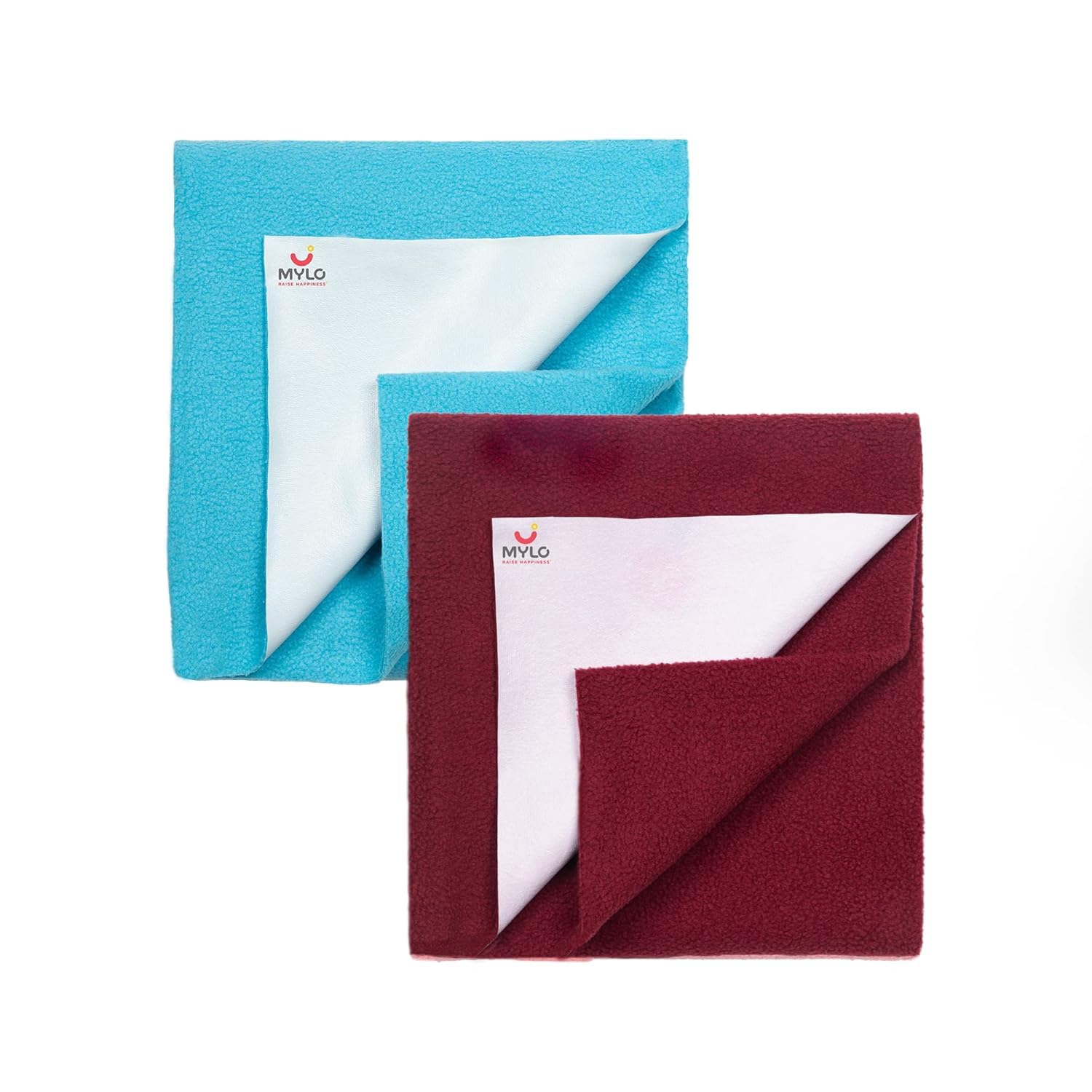 Mylo Baby Waterproof Mattress Protector for Baby (0-3 Years) Extra Absorbent Soft and Reusable Quick Dry Sheets (Turquoise & Maroon)- Pack of 2