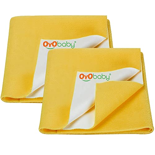 HomeBabyNurseryCrib SheetsOYO BABY 100% Waterproof Polycotton Toddler Baby Dry Sheet, Extra Absorbent Infant Bed Sheet for New Born & Toddler Babies, Baby Bed Protector for Toddler Children, Medium Size, 100 X 70 cm, Yellow