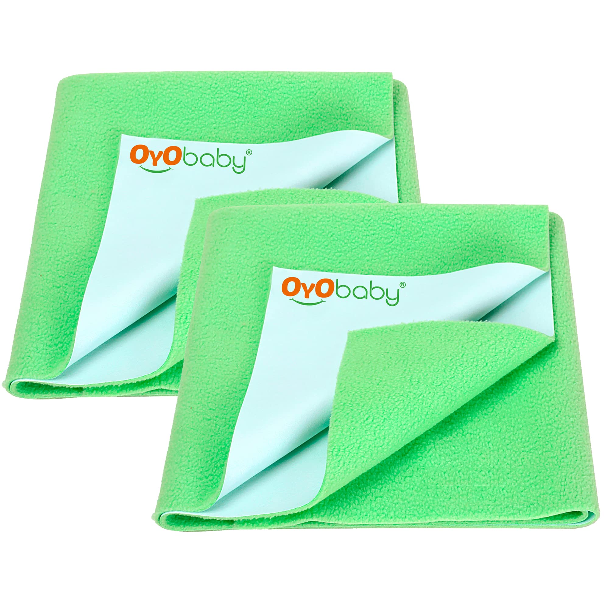 HomeBabyNurseryCrib SheetsOYO BABY Extra Absorbent Waterproof Baby Dry Sheet Medium Size (100 x 70cm) Pack of 2 | Quick Dry Sheet for New Born Baby Bed Protector, Soft & Breathable Rubber Sheet for Bed|Light Green