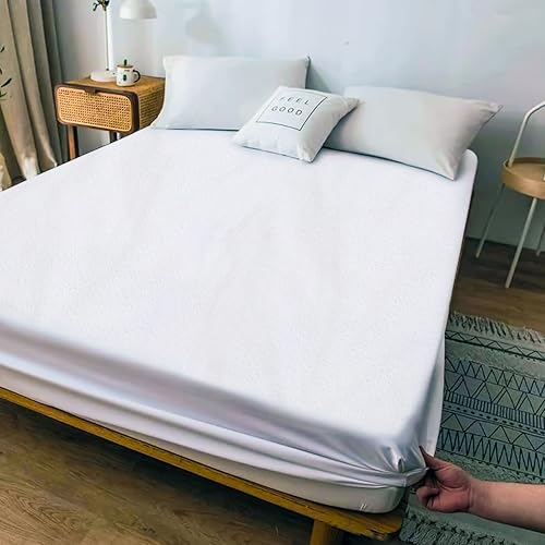 HomeBabyNurseryCrib SheetsOYO BABY Waterproof Elastic Fitted Mattress Protector Double Bed 72 x 72 Inch Ultra Soft Cotton Feel Bed Sheet Terry Cover 6 x 6 Feet White