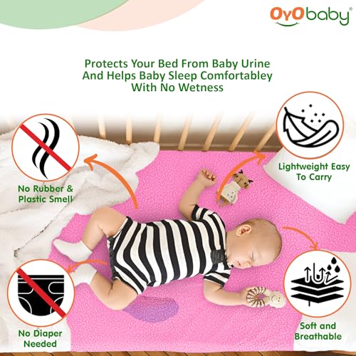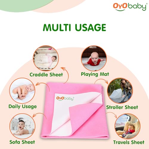 OYO Baby Care Waterproof Bed Protector Baby Care Dry Sheet, Medium, Pink (100 cm x 70 cm)