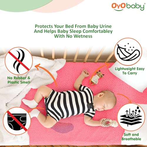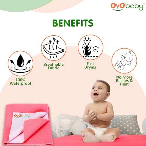 OYO BABY Extra Absorbent Waterproof Baby Dry Sheet Single Bed (72 x 36 Inch) | Quick Dry Sheet for New Born Baby Bed Protector, Soft & Breathable Rubber Sheet for Bed|Salmon Rose