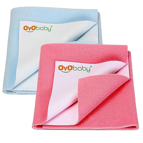 OYO BABY Extra Absorbent Waterproof Baby Dry Sheet | Quick Dry Sheet for New Born Baby Bed Protector, Soft & Breathable Rubber Sheet for Bed (Blue + Salmon Rose, Medium Combo 2)