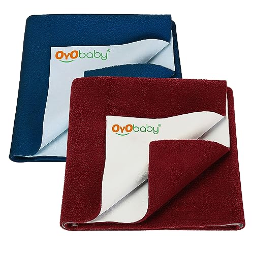 OYO BABY Extra Absorbent Waterproof Baby Dry Sheet Medium Size (100 x 70cm) Pack of 2 | Quick Dry Sheet for New Born Baby Bed Protector, Soft & Breathable Rubber Sheet for Bed|Dark Sea Blue - Maroon