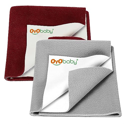 OYO BABY Extra Absorbent Waterproof Baby Dry Sheet Medium Size (100 x 70cm) Pack of 2 | Quick Dry Sheet for New Born Baby Bed Protector, Soft & Breathable Rubber Sheet for Bed|Grey - Maroon