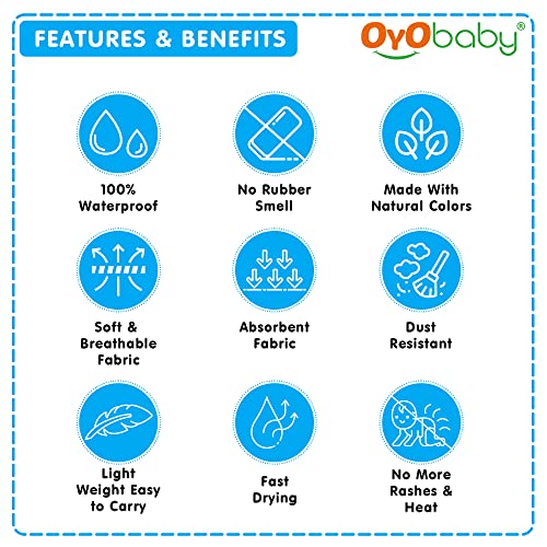 Peace of Mind: OYO BABY waterproof undermats will provide excellent protection against fluids urine perspiration allergens dust mites and bacteria. It is 100% waterproof yet breathable comfortable and noiseless. The mat is vinyl (PVC) free and safe to sensitive skins. Silky Smooth and Soft to the Touch: OYO BABY mattress undermat is covered by quality cotton fiber and high absorbent fiber liner which allow the mat to feel exceptionally smooth on the skin even after repeated uses and washes. Breathable and noiseless Barrier: Unlike traditional waterproof mats that use vinyl (PVC) as barrier OYO BABY undermats use a safer material called TPU. TPU is noise free and totally breathable. TPU also prevents microorganisms and molds as well as dust mites ideal for ultimate allergy relief. Extremely Versatile: No matter you are at home or on-the-go and travel put it on a bed a chair a sofa or on your lap use it for your toddler elderly parents this waterproof mat gets the job done. In addition to be mattress sheet cover it can also be used in the bassinet cradle crib and changing table as a changing mat cover or changing mat liner. Durable: OYO BABY waterproof mat features 3 layer construction with soft cotton fiber surface noiseless waterproof barrier middle layer and super absorbent fiber liner. The mat is machine washable. Machine wash at warm or cold temperature and tumble dry low only Hang dry is recommended.