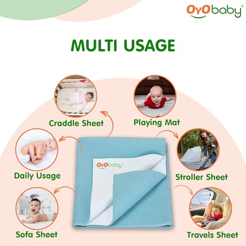 OYO Baby - Baby Dry Sheet for New Born Babies | Infant Waterproof Bed Protector Sheet for Baby | Mattress Pads (Single Bed-(72" X 36"), Aqua Blue)