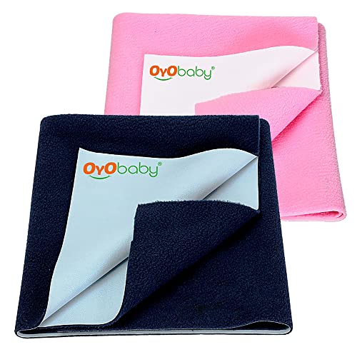 HomeBabyNurseryCrib SheetsOYO BABY Extra Absorbent Waterproof Baby Dry Sheet Large Size (140 x 100cm) Pack of 2 | Quick Dry Sheet for New Born Baby Bed Protector, Soft & Breathable Rubber Sheet for Bed|Dark Blue - Pink