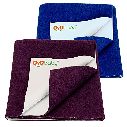 HomeBabyNurseryCrib SheetsOYO BABY Extra Absorbent Waterproof Baby Dry Sheet Large Size (140 x 100cm) Pack of 2 | Quick Dry Sheet for New Born Baby Bed Protector, Soft & Breathable Rubber Sheet for Bed|Royal Blue - Plum