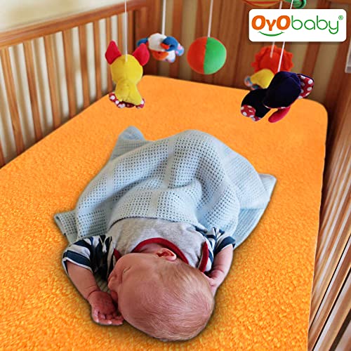 OYO BABY Toddler Baby Bed Sheet with Water Resistant and Easily Washable Dry Sheet Extra Absorbent Washable Dry Sheet | Soft and Fleece Baby Bed Sheet for Toddler Kids Large Size 140 X 100cm Peach