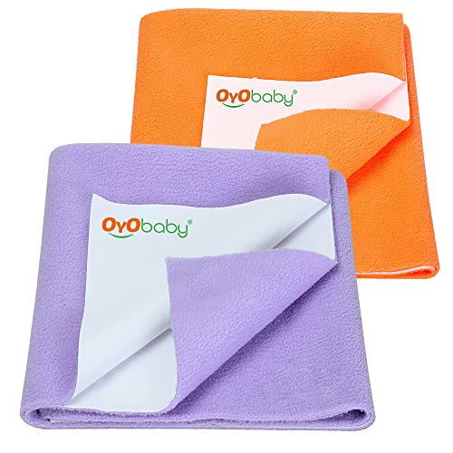 OYO BABY Waterproof Baby Bed Protector Dry Sheets for New Born Babies | Reusable Mats | Cot & Bassinet Gift Pack (Peach + Voilet)Small (70cm x 50cm)