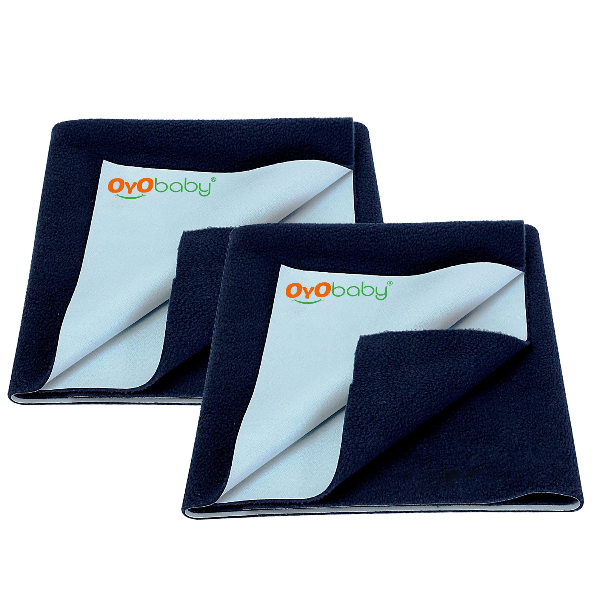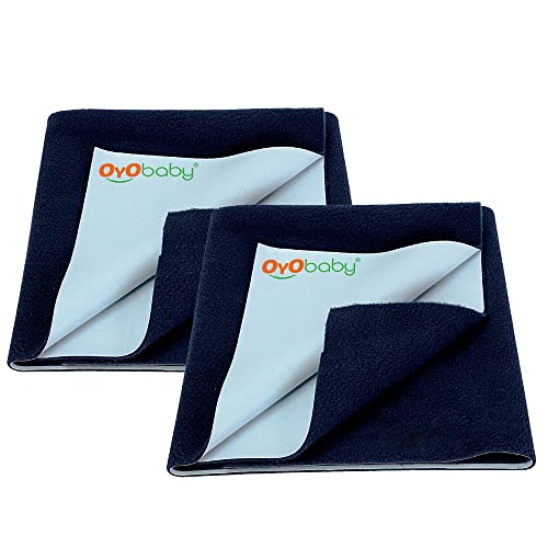 OYO BABY - Waterproof Mattress Protector Sheet | Dry Sheet for Kids and Adults - (Baby Bed Protector Medium Size - 100cm x 70cm - (Pack of 2), Dark Sea Blue), Polycotton