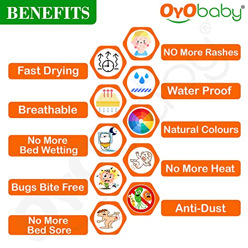OYO BABY baby dry sheet is made of best waterproof material and highly absorbent fibre. Provides freedom to enjoy uninterrupted sleep for longer periods. It is with quick dry technology that dries faster. Feel the diaper free night and rush-free skin cosy smooth and silky feeling. This waterproof mattress protector has cosy soft and smooth top surface for baby to have sound sleep all night with maximum protection. OYO BABY quick dry bed protector sheet Moreover it is skin friendly and heat-free soft and unique multi-layer noiseless fabric sheet. It is an alternative to PVC rubber mats. Highly hygienic and breathable water proof sheet which is durable reusable economical and light weight. This amazing baby bed protector sheet is ready to use anywhere you go. This baby dry sheet is delicate spongy associated water-proof on these lines creating the tangle usable for babies and grown-up. Made up natural colour dyes which are best for babies. Further this perfect dry sheet for babies protects bed from obtaining wet. So offer your baby the liberty to pee on the bed and let them sleep for extended hours. This sheet from OYO BABY is an absorbent & water proof. It stops the piss or any liquid from getting in your mattresses. It dries quickly so you don't have to be compelled to amendment the sheets once more & again. Conjointly it holds eight times water then its weight. Also it is available in 4 different sizes - Small Medium Large & Extra Large. For example if you want dry sheet for baby for double bed then you dont have to worry we are having the best baby dry sheets here.