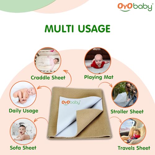 OYO BABY Waterproof Quick Dry Sheet for Baby| Bed Pad | Baby Bed Protector Sheet for Toddler Children (Small (50cm x 70cm), Beige), Polycotton