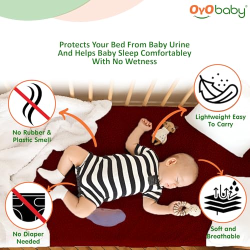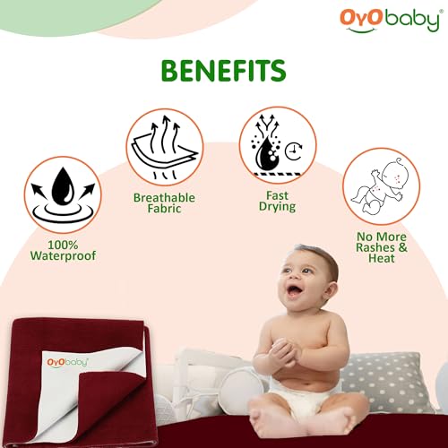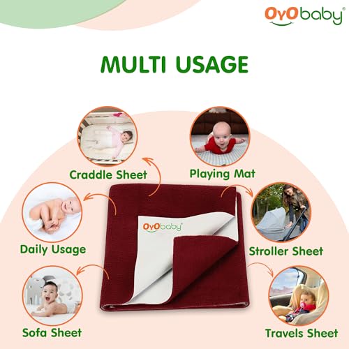 HomeBabyNurseryCrib SheetsOYO BABY Cotton Waterproof Quick Dry Sheet For Baby | Bed Pad | Baby Bed Protector Sheet For Toddler Children (Small (50Cm x 70Cm), Maroon)