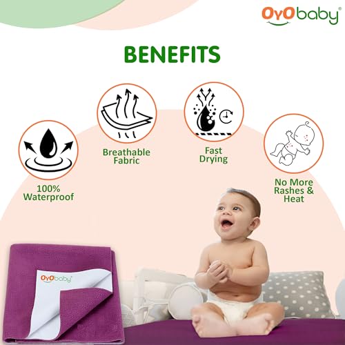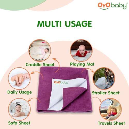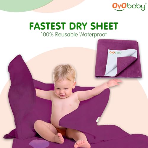 OYO BABY baby dry sheet is made of best waterproof material and highly absorbent fibre. Provides freedom to enjoy uninterrupted sleep for longer periods. It is with quick dry technology that dries faster. Feel the diaper free night and rush-free skin cosy smooth and silky feeling. This waterproof mattress protector has cosy soft and smooth top surface for baby to have sound sleep all night with maximum protection. OYO BABY quick dry bed protector sheet Moreover it is skin friendly and heat-free soft and unique multi-layer noiseless fabric sheet. It is an alternative to PVC rubber mats. Highly hygienic and breathable water proof sheet which is durable reusable economical and light weight. This amazing baby bed protector sheet is ready to use anywhere you go. This baby dry sheet is delicate spongy associated water-proof on these lines creating the tangle usable for babies and grown-up. Made up natural colour dyes which are best for babies. Further this perfect dry sheet for babies protects bed from obtaining wet. So offer your baby the liberty to pee on the bed and let them sleep for extended hours. This sheet from OYO BABY is an absorbent & water proof. It stops the piss or any liquid from getting in your mattresses. It dries quickly so you don't have to be compelled to amendment the sheets once more & again. Conjointly it holds eight times water then its weight. Also it is available in 4 different sizes - Small Medium Large & Extra Large. For example if you want dry sheet for baby for double bed then you dont have to worry we are having the best baby dry sheets here.