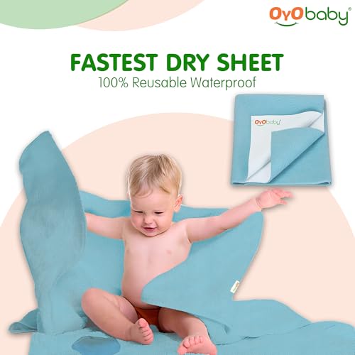 HomeBabyNurseryCrib SheetsOYO BABY Cotton Waterproof Quick Dry Sheet For Baby|Bed Pad|Baby Bed Protector Sheet For Toddler Children(X-Large(200Cm X 140Cm),Sea Blue)