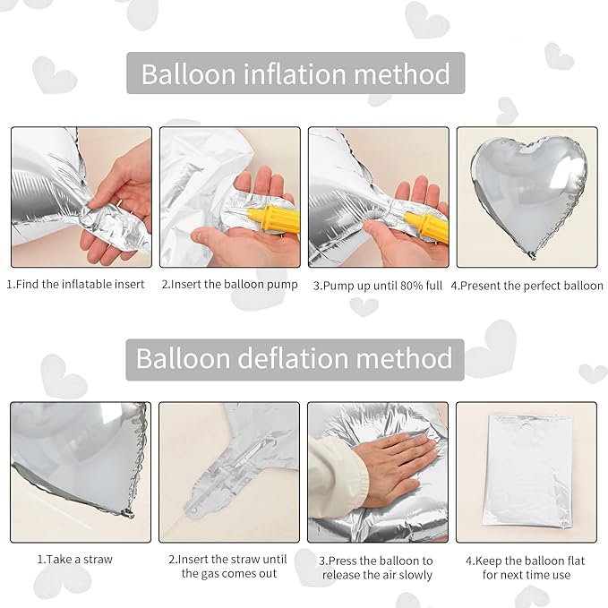 High Quality Materials: Our silver heart balloons are made of high-quality safety foil which makes them durable glossy and beautiful in shape.