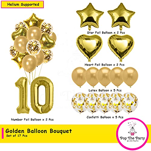 HomeBabyParty SuppliesPop The Party 10th Birthday Party Decorations Gold Supplies Big Set With Happy Birthday Balloons Banner and 10 Digit Balloon for Including Latex, star, heart and Confetti Balloons