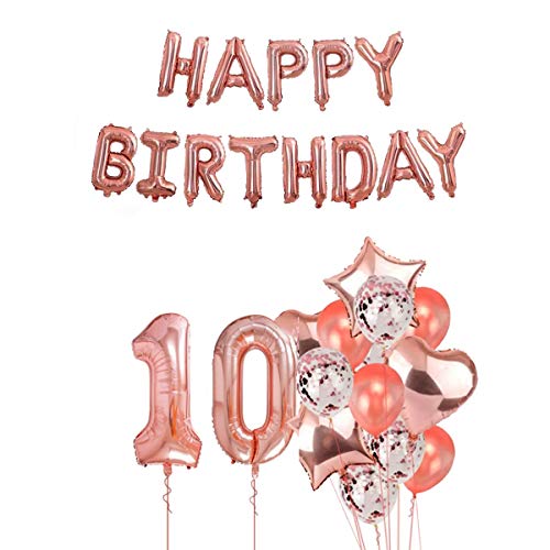 HomeBabyParty SuppliesPop The Party 10th Year Birthday Party Decorations Rose Gold Supplies Big Set with Happy Birthday Balloons Banner and 10 Digit Balloon for Including Latex, Star, Heart and Confetti Balloons
