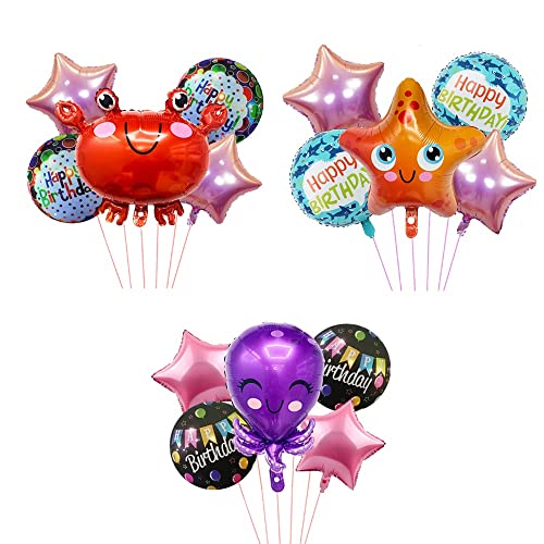 HomeBabyParty SuppliesPop The Party 15Pcs Ocean Animals Balloons Under The Sea Balloons Starfish Crab Octopus with Star and Round foil Balloon for Birthday, Ocean Party Decorations