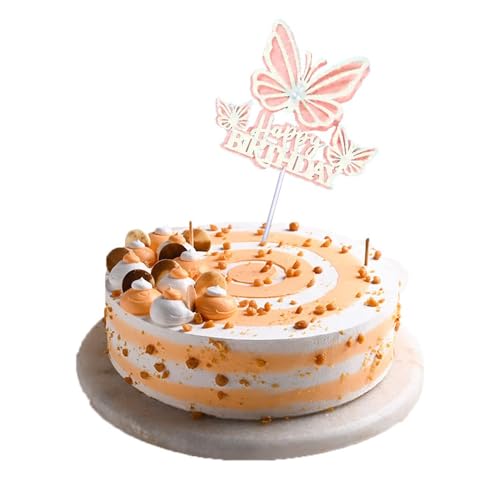 Pop The Party 1Pcs Pink Happy birthday pearl Butterfly Cake topper for Girls Women's Happy Birthday Cake Decoration.