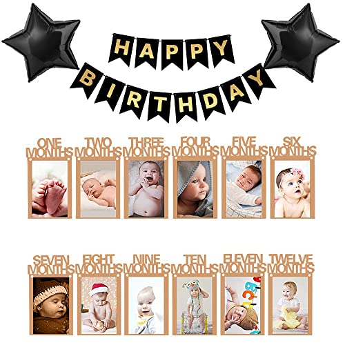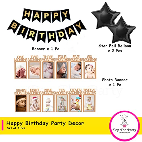 HomeBabyParty SuppliesPop The Party 1st Birthday Decoration Kit with Star Foil Balloon and Happy Birthday Brown Photo Banner for use of Boy Girl Birthday Decoration