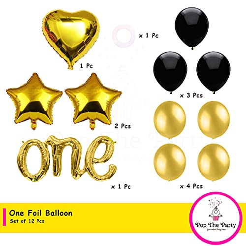 Pop The Party 1st Birthday Decorations - Monthly Milestone Birthday Photo Banner for Newborn to 12 Months, Picture Banner (Pictures not Included) (One Set Gold)